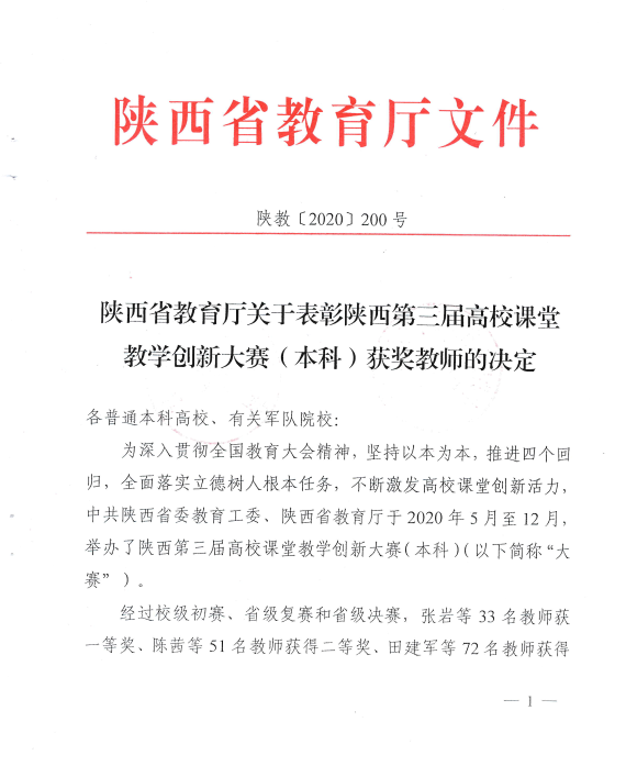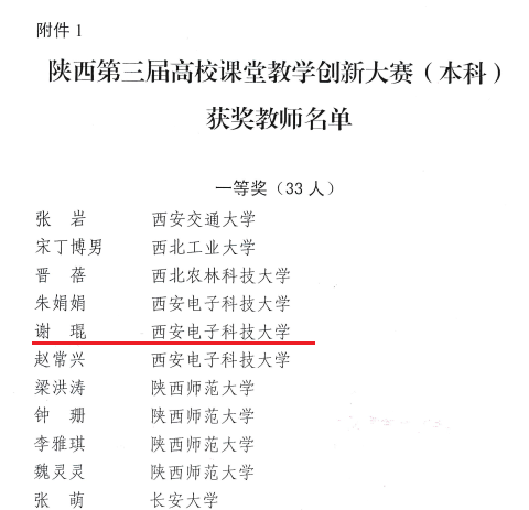 (通讯员 陈龙)日前,陕西省教育厅公布了第三届高校课堂教学创新大赛结果,公司谢琨老师获省级一等奖,取得该赛事开展以来公司最好成绩。