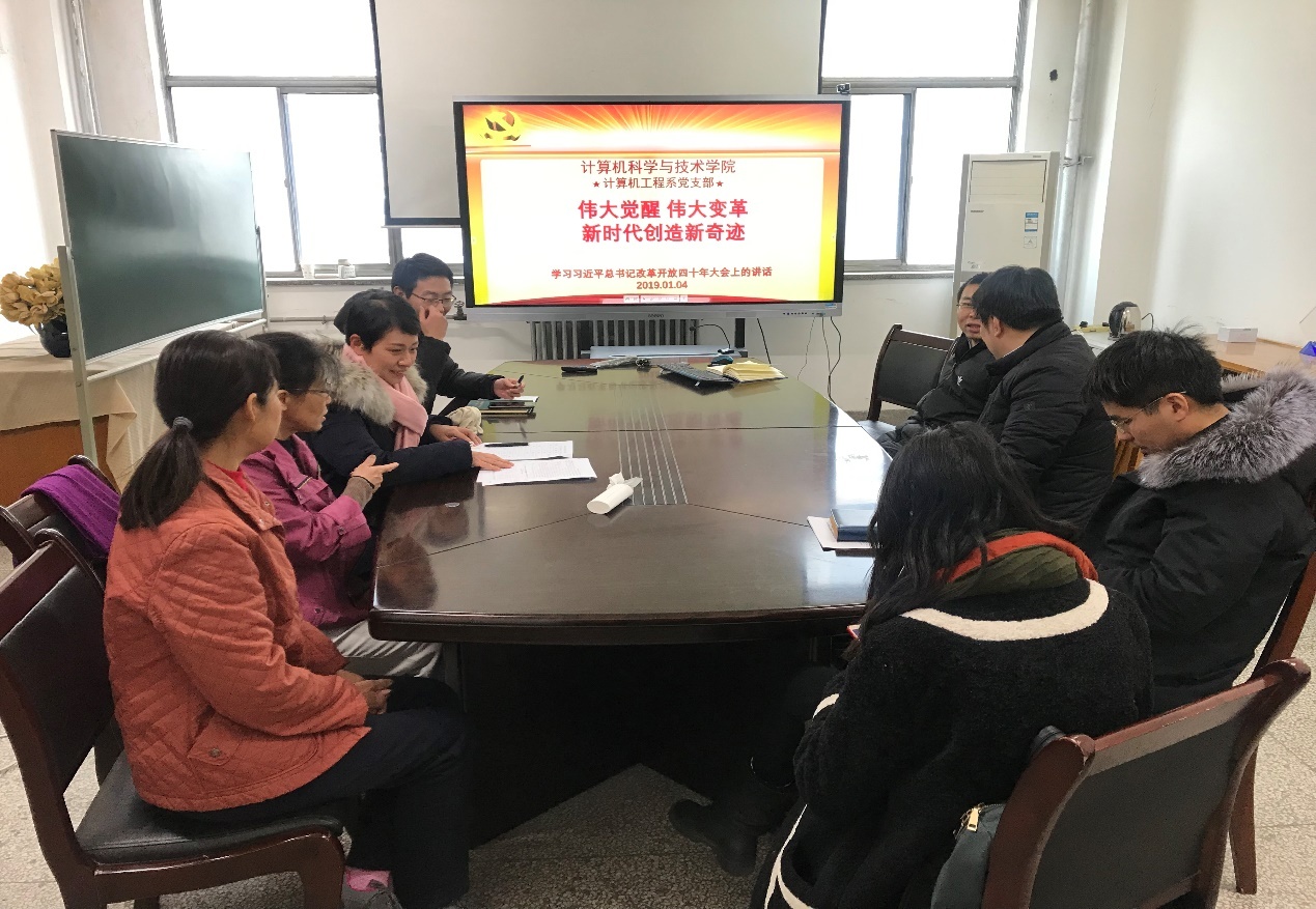 (通讯员:杨鹏飞 鱼亮)历史的发展有其规律,只要把握住历史发展大势,抓住历史变革时机,奋发有为,锐意进取,就能更好前进。12月18日上午,在庆祝改革开放40周年大会上,中共中央总书记、国家主席、中央军委主席习近平在大会上结合我国40年来改革发展辉煌历程发表重要讲话。1月4日下午,在2019新年的第一个支部主题活动日中,太阳成集团tyc234cc工程系支部召开专题学习会,深入学习习近平总书记重要讲话精神,集中开展研讨交流。学习会由支委委员杨鹏飞代班主持,工程系党员同志参加。