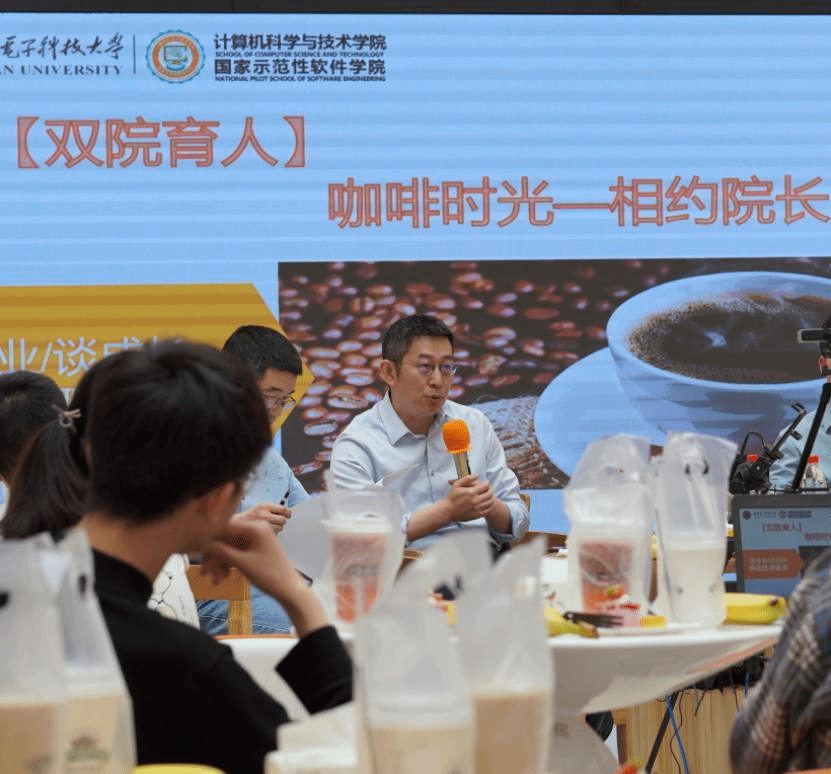 (通讯员 雷泽宇)为进一步落实双院育人要求,充分满足计算机类2020级本科生对公司及专业的认知与学习需要,5月21日下午,太阳成集团tyc234cc“咖啡时光·相约经理”大一专场活动在南校区竹园1号楼大厅成功举办,公司执行经理崔江涛教授,公司教师张亮教授,付少锋、杨鹏飞副教授与60余名大一同学共聚一堂,品咖啡、话专业、谈成长、聊家常。活动同时在“学在西电”平台直播,百余名同学在线参与。