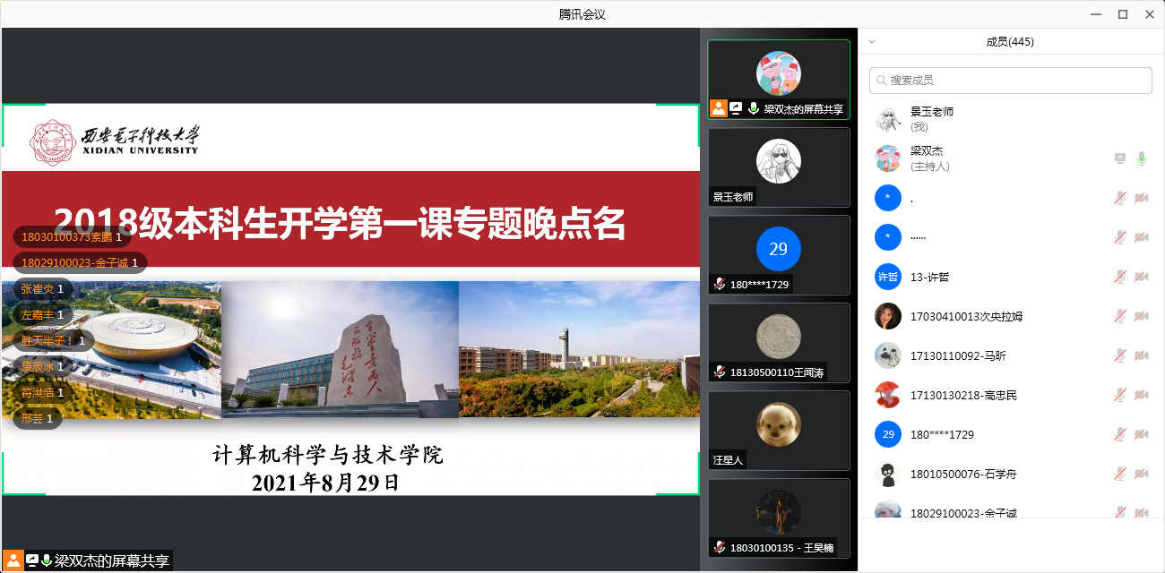 (通讯员 景玉 张力月)2021年8月29日下午,太阳成集团tyc234cc面向2018级本科生开展了线上“开学第一课”专题晚点名活动。三位本科生辅导员围绕疫情防控、安全教育、升学深造、就业择业等多个方面向同学们介绍了本学期的重点工作任务,引导同学们早知道、早准备、早规划。