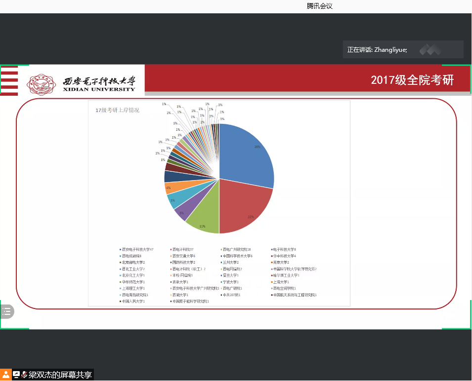 辅导员张力月老师在升学深造方面向大家介绍了2021届本科毕业生的升学深造情况,从报录比和升公司校分布两个角度,结合历年来的考研报名趋势,分析了今年的考研形势。张老师提醒同学们要根据自身情况制订计划,切忌盲目随大流、盲目从众,要根据个人学习能力、复习情况、院校竞争程度谨慎选择报考院校,及时关注考研信息,合理规划复习时间,同时也鼓励同学们在学习之余关注秋招信息,为做好就业争取求职机会。