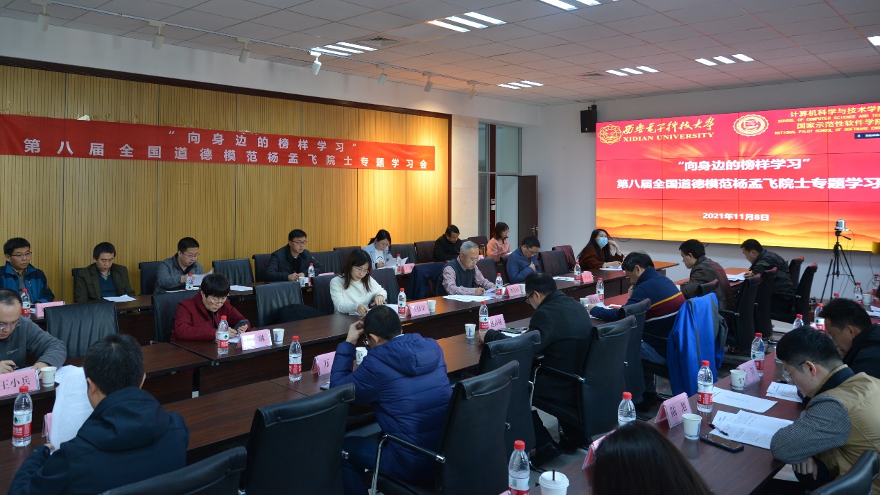 计算机科学系主任王小兵说到,杨孟飞院士能够将个人发展置身于党和国家的需求中去,为航天人树立了优秀的榜样。作为一线教师,要以员工为中心,科研服务国家重大需求,将西电精神传承下去。