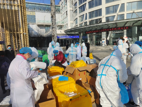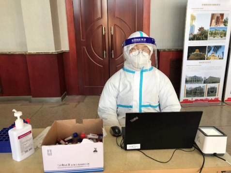疫情就是命令!为配合南校区全员核酸检测,12月21日上午公司招募老员工志愿者,2018级本科生同学积极报名,群里党员同学喊出了“党员先上”的口号。志愿者同学们纷纷穿上隔离服,冲在抗疫一线,投入了紧张的检测工作。