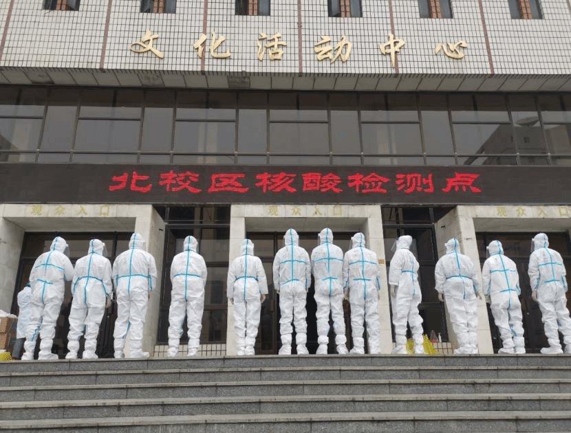 疫情形势严峻,21级硕士研究生宋姗第一时间报名参加了南校区核酸检测的志愿工作。志愿者们的主要工作是扫描同学们的一码通以及采样管上的二维码,并核对身份信息,确保身份信息与采样管号码对应。同时,帮助医护人员及时补充材料,协助医护人员进行采样。医护人员每完成一个人的采样,都需要消毒,在医护人员的指导下,志愿者们学会了怎样正确地脱掉防护服并及时进行消毒。