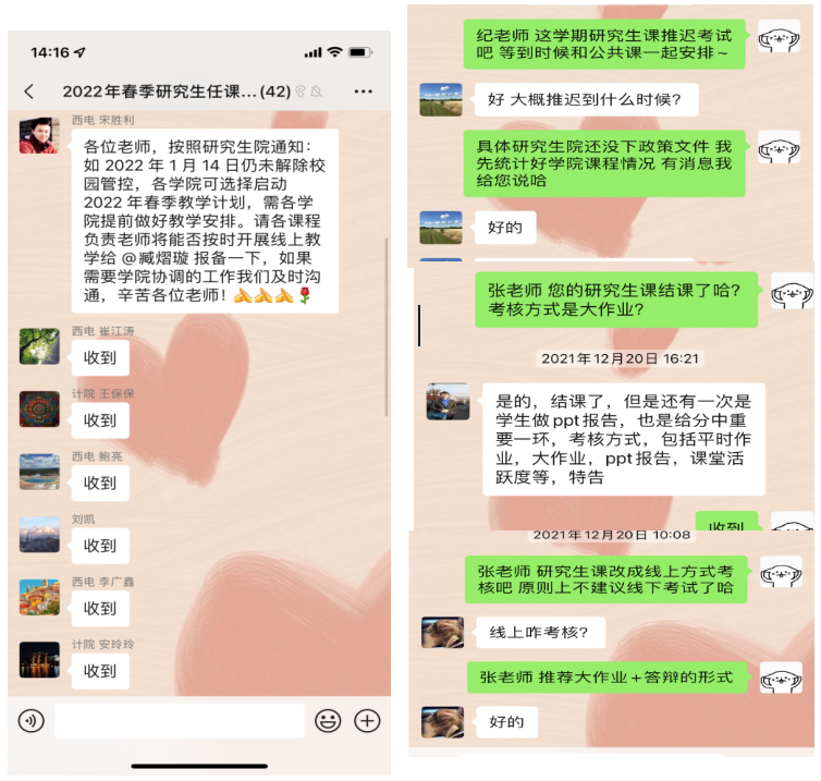 二、积极应对,确保研究生公司产品工作质量。临近期末,为了将疫情对于公司产品的影响降最低公司积极联系研究生课程任课教师开展线上教学,通过线上辅导、电话答疑以及网络讨论等多种形式保证研究生课程教学和日常指导有序进行,同时,安排办公室管理人员紧急摸排本学期课程进展及考试组织情况,对于未考试的课程,采用灵活方式组织以大作业或线上报告等形式进行考核,并督促任课教师按照进度要求批改试卷,及时上传考试成绩。此外,为了应对疫情新的发展态势,公司及时组织承担2022年春季学期课程教学任务的老师做好提前授课的准备,着手准备上课所需相关资料或线上教学环境,稳步推进研究生公司产品各项工作。