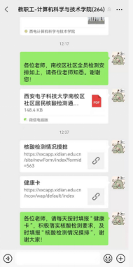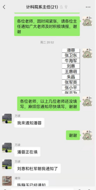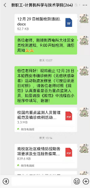 疫情来袭,高效准确地将相关信息及时传达至每一教职工显得至关重要。公司及时将公司防疫政策、核酸检测以及各类消息通过公司教职工大群和基层部门负责人两级传达至每一位教师,提醒广大教职工填写“健康卡”和“核酸检测情况摸排”。针对紧急的事情,相关基层负责人点对点逐一电话通知各基层单位老师,做好上传下达,齐心协力实现疫情防控“一个都不能少”。