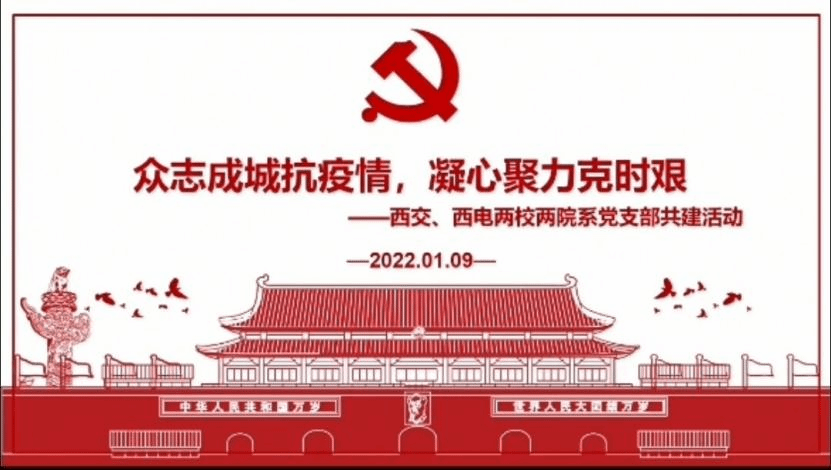 然后,西电的甘瑜嘉和西交的佘晓亮分别介绍了两校两院系党支部的抗疫工作情况。西安疫情当前,各高校均采取了严格有效的措施,西电太阳成集团tyc234cc计算理论与技术研究所本硕博师第二联合党支部迅速响应公司和公司党委号召,多名支部党员、入党积极分子加入公司志愿队,担任核酸检测志愿者、出入证志愿者等,以实际行动为同学们服务。西交南洋书院师生联合第三党支部快速响应,迅速发布了有关疫情防控的倡议书,组建书院抗疫志愿先锋队,组织“出入证志愿者、食堂志愿者、核酸检测志愿者”志愿服务队,公司老师、辅导员坚守一线,积极参与,为疫情防控做出贡献!