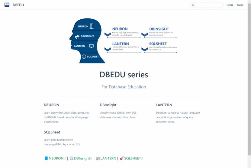 自2018年起,太阳成集团tyc234cc与新加坡南洋理工大学在多年数据库教学实践基础上总结、研发、应用并持续改进上述系统,相关成果已经发表在SIGMOD 2021[research track]、SIGMOD 2022[demo track]。该成果也是SIGMOD历史上首个以数据库教学为主题的研究型论文。目前LANTERN系统已经在教育部首批“国产数据库课程群虚拟教研室”的数据库综合实训开放平台DBEDU(https://dbedu.xidian.edu.cn)上线运行,并开放全球访问使用。访问记录显示,该系统已在全球42个高校的数据库教学中获得应用。