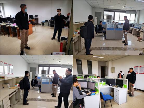 公司党委书记李青山、副经理沈玉龙、副经理赵韩强检查北校区主楼、西大楼、科技楼、科技实验楼和教辅楼实验室