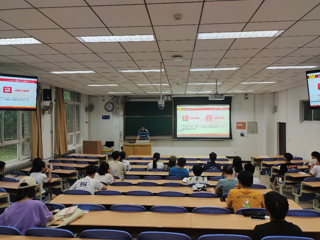 (通讯员 同榛)为深入贯彻落实习近平新时代中国特色社会主义思想,加强入党积极分子队伍建设,引导“拔节孕穗期”的青年学子听党话,跟党走,近日,计算机科学与技术公司党委书记李青山教授、正处级组织员张卫东老师在南校区为公司入党积极分子讲党课,2个分教室、青岛研究院分会场同步观看学习,共计100余名入党积极分子培训班学员参加培训。