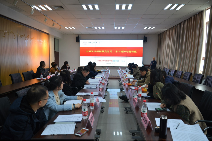 李青山领学了习近平总书记在中央政治局第一次集体学习时的重要讲话。李青山谈到,公司党委要把学习宣传贯彻党的二十大精神作为贯穿全年的工作主线。按照公司要求,尽快制定印发《计算机科学与技术公司党委关于深入学习宣传贯彻党的二十大精神的实施方案》,明确工作要求和时间节点,细化工作任务。全院师生要充分认识学习宣传贯彻党的二十大精神的重要意义,提高思想自觉、行动自觉;深学细悟,学以致用,以党的二十大精神武装头脑、指导实践、推动工作。