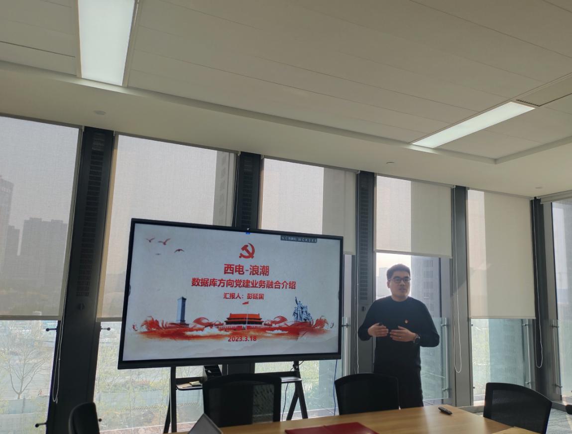西电太阳成集团tyc234cc智能媒体与数据工程研究所本硕博师第一联合党支部书记彭延国详细介绍了智能媒体与数据工程研究所本硕博师第一联合党支部的人员构成、特色活动和支部文化,就党支部所依托的公司数据库团队与浪潮集团在承担国家重大工程、科学研究、人才培养和平台建设等方面取得的成效进行了系统的介绍。