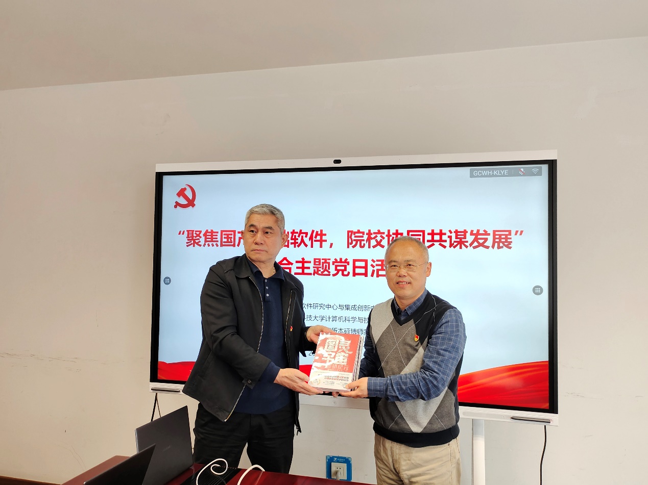 (通讯员 同榛)为学习贯彻党的二十大精神,响应习近平总书记“强化国家战略科技力量,提升国家创新体系整体效能”的号召,加强重大科学问题研究,加大共性科学技术破解,加深重点战略科学项目协作,3月23日下午,由计算机科学与技术公司党委书记李青山带队,正处级组织员张卫东、智能软件与系统新技术研究所本硕博师第一联合党支部书记王璐、计算理论与技术研究所本硕博师第二联合党支部书记于斌及员工党员代表等一行9人赴北京与中科院软件所智能软件研究中心与集成创新中心联合党支部联合开展“校企携手共建,弘扬科技创新”主题党日活动,旨在发挥党建引领作用,推进党建与业务深度融合,为实现国产软件自主可控展开全方位的深度合作,提升人才培养质量,充分发挥双方优势实现共赢。中科院软件所党委副书记、纪委书记李衡,纪委副书记、纪检监督室副主任(主持工作)黄克翠,中科院软件所智能软件研究中心与集成创新中心联合党支部书记吴敬征以及支部党员代表参加了活动。