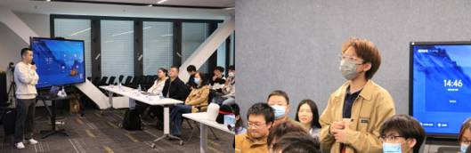 程莉介绍了掌趣校招人才培养体系建设情况,姬景刚从信息技术升级的角度表示,企业更加注重员工的基础能力和可持续学习能力,希望能与公司加强交流合作,共促员工能力成长。培训负责人详细介绍了掌趣全流程培训体系。公司2020届毕业生、现负责客户端开发工作的石同学结合项目经历说:“掌趣新人培训给我的感觉很好。对于师弟师妹们我想说,作为程序员,和其他同事的沟通协作非常重要。”