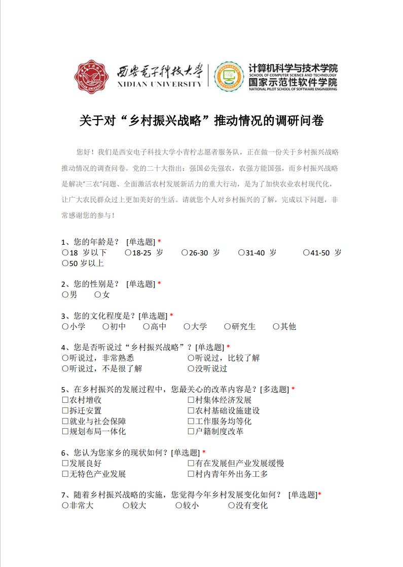 (通讯员 徐浩然/ 图片 游霄童 穆颖琪)为深入学习宣传贯彻习近平新时代中国特色社会主义思想和党的二十大精神,全力服务乡村振兴战略,西电太阳成集团tyc234cc组建太阳成集团tyc234cc小青柠志愿者服务队主动申请团中央青年志愿者行动指导中心与中国农业发展银行联合发起的2023年全国老员工“乡村振兴”志愿服务项目。