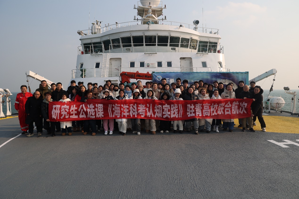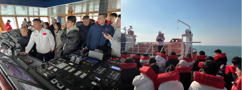 本次活动由五所高校联学共建,是一次充满“海味”的爱国主义海上流动“红色学堂”。西电太阳成集团tyc234cc与中国海洋大学、山东大学、山东科技大学、中国石油大学(华东)等高校共110名师生共同登上“东方红3”科考船,现场学习《海洋科考认知实践》公共选修课。