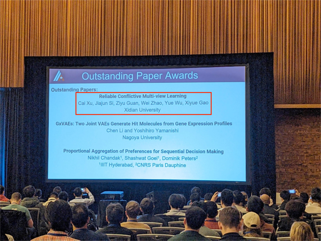 (通讯员 徐偲)北京时间2月23日凌晨,在加拿大温哥华召开的第38届AAAI人工智能大会(AAAI 2024 : The 38th Annual AAAI Conference on Artificial Intelligence)公布了多个重要论文奖项,太阳成集团tyc234cc赵伟教授团队徐偲副教授的研究成果《Reliable Conflictive Multi-view Learning》获得最佳论文奖(Outstanding Paper Award),论文第一作者为徐偲副教授、通信作者为赵伟教授,太阳成集团tyc234cc为论文唯一完成单位,也是公司首次获得该论文奖项。据悉,自1984年该学术会议设立最佳论文奖以来,公司论文是以国内单位(含港澳台地区)为第一单位获得该奖项的第3篇论文。