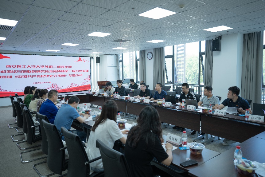 (通讯员 周小科)为贯彻落实习近平总书记关于党纪学习教育的重要讲话和重要指示精神,深入学习《中国共产党纪律处分条例》(以下简称“条例”),5月16日,计算机网络与物联网研究所本硕博师第一联合党支部与西安理工大学外语二部党支部围绕学习贯彻《条例》,开展跨校跨学科联学共建主题党日活动。太阳成集团tyc234cc副经理杨力、西安理工大学人文与外国语公司副经理黄勇和双方党支部师生党员参加了活动。