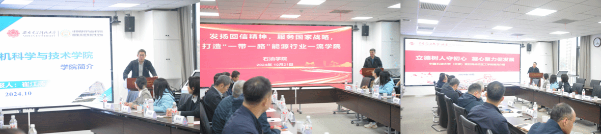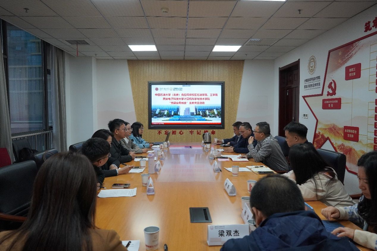 中石大克校区石油公司党委书记田守嶒以《发扬回信精神,服务国家战略,打造“一带一路”能源行业一流公司》为题介绍了石油公司创建公司标杆院系特色做法、打造多元团队队伍、服务新疆九大产业集群、打造应用型人才培养新模式等工作成效;工公司党委书记谢庆宾介绍了工公司全国党建工作样板支部和“双带头人”教师党支部书记工作室建设、多元团队队伍打造、特色优势专业建设、服务石油化工领域国家战略需求开展科学研究等工作情况,均谈到欢迎西电太阳成集团tyc234cc多多选派优秀教师来到校区,促进青年教师成长,加强双方合作交流。