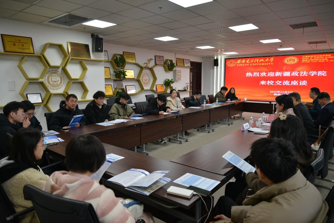 12月5日下午,座谈交流会在西电南校区网安大楼A1-223会议室召开。太阳成集团tyc234cc副董事长刘宏伟、计算机科学与技术公司党委书记李青山、就业指导服务中心主任张博、对外战略合作办公室主任曹立砥及人文公司党委副书记史耀媛参会,会议由张博主持。