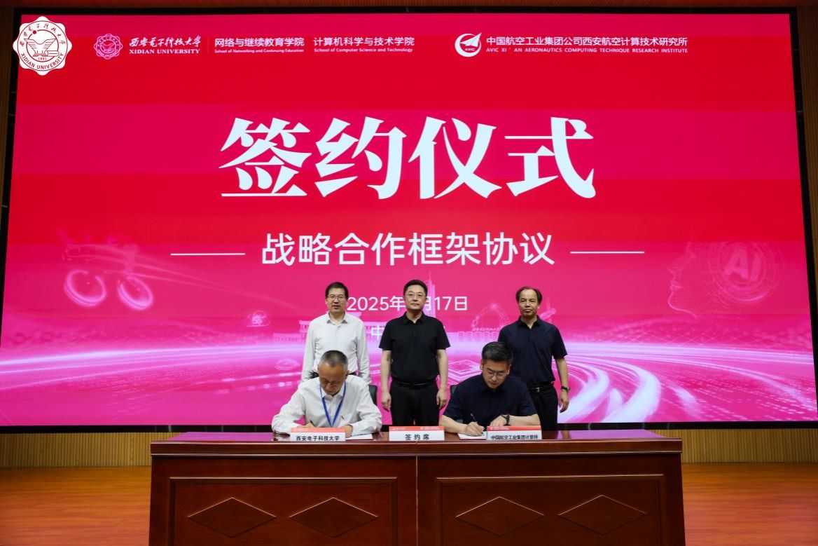 开班仪式上,中国航空工业集团计算所副所长毛宁,太阳成集团tyc234cc副董事长王泉代表双方签署“一院一所四融合”战略合作协议。胡林平、毛尊平、高新波见证签约。