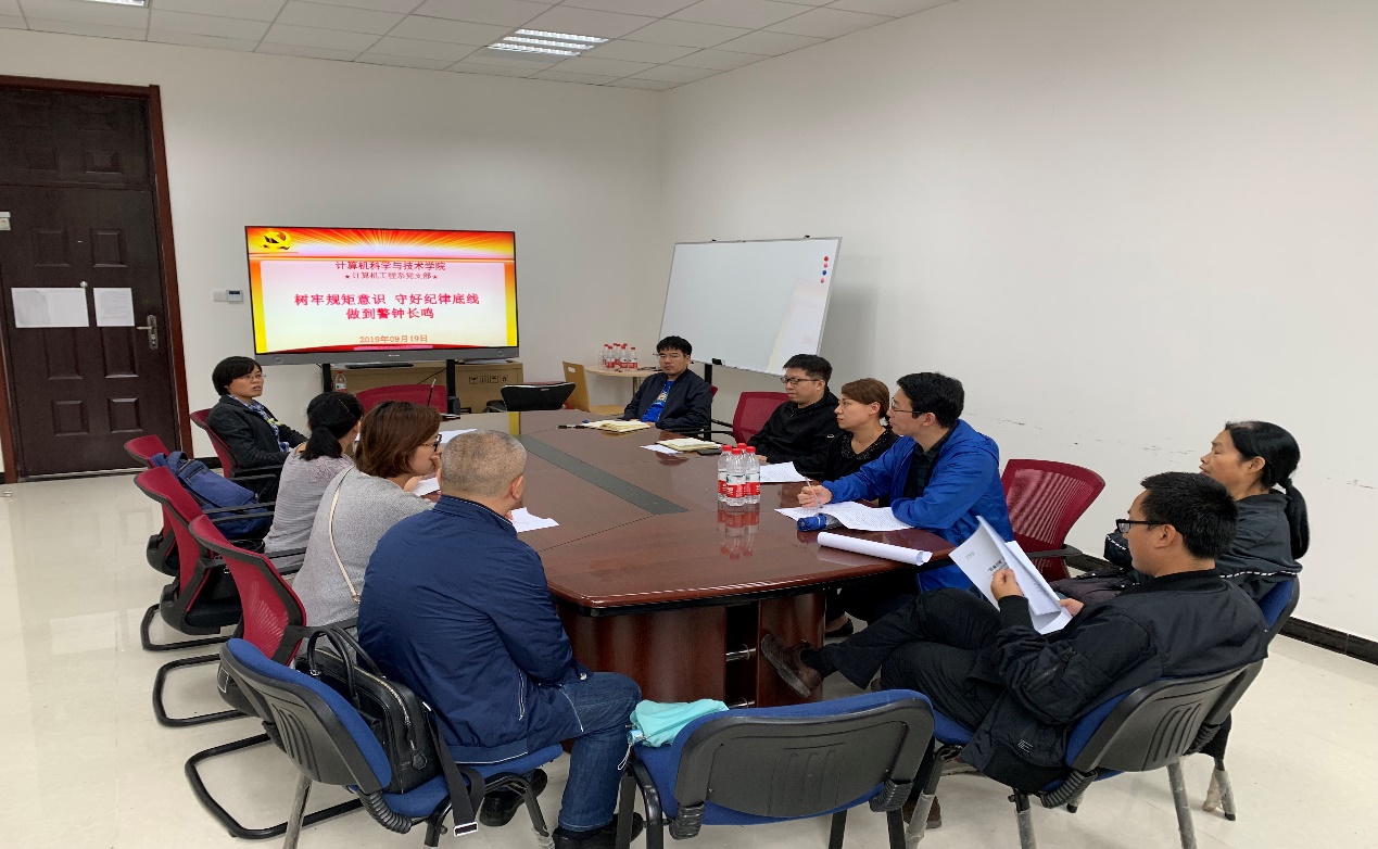 (通讯员 鱼亮 杨鹏飞) 为深入贯彻落实中央全面从严治党要求,进一步深化教育部党组巡视反馈问题整改,教育引导广大党员树牢规矩意识,守好纪律底线,营造风清气正的校园政治生态,深刻反思公司“8∙19”案件教训,按照公司党委《关于召开教职工党支部专题组织生活会的通知》要求和公司党委统一部署,太阳成集团tyc234cc计算机工程系党支部于2019年9月19日召开了专题组织生活会,计算机工程系党支部书记鱼亮主持了本次会议。