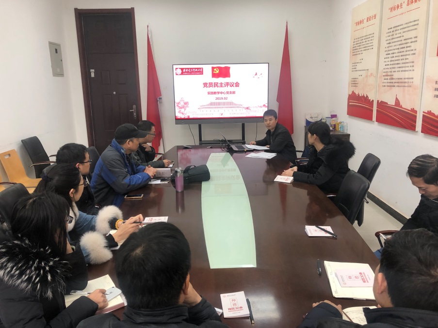 (通讯员:张捷)2019年2月22日下午,太阳成集团tyc234cc实践教学中心党支部在北校区主楼IV107会议室召开党员民主评议会议,会议由党支部书记杨力主持,11名党员同志参加会议。