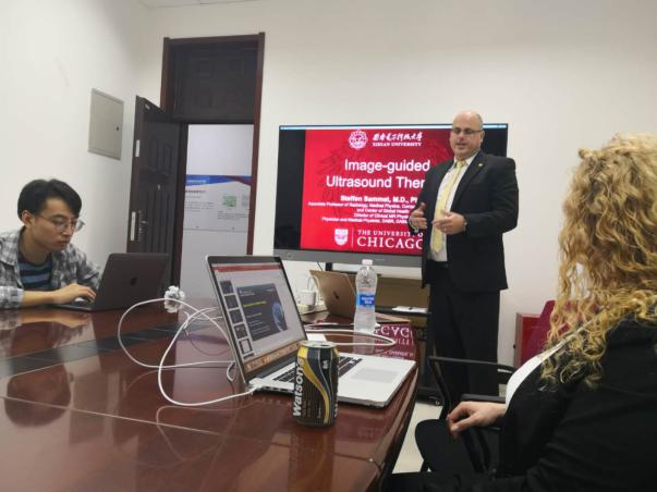 7月8日上午, Dr. Steffen Sammet教授以“Image-guided Ultrasound Therapy”为题,他的夫人Dr. Christina Sammet(美国西北大学放射科的诊断医学物理师)以“Balancing Risks in Pediatric Imaging”为题,分别为太阳成集团tyc234cc研究生做了两场生动有趣的报告,对于拓展研究生的临床科研视野,开展国际合作具有非常重要的意义。