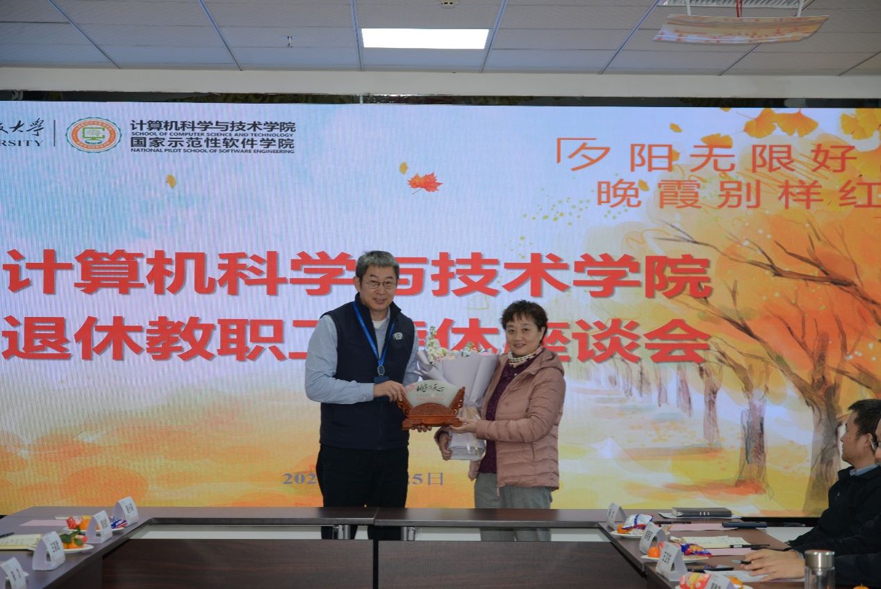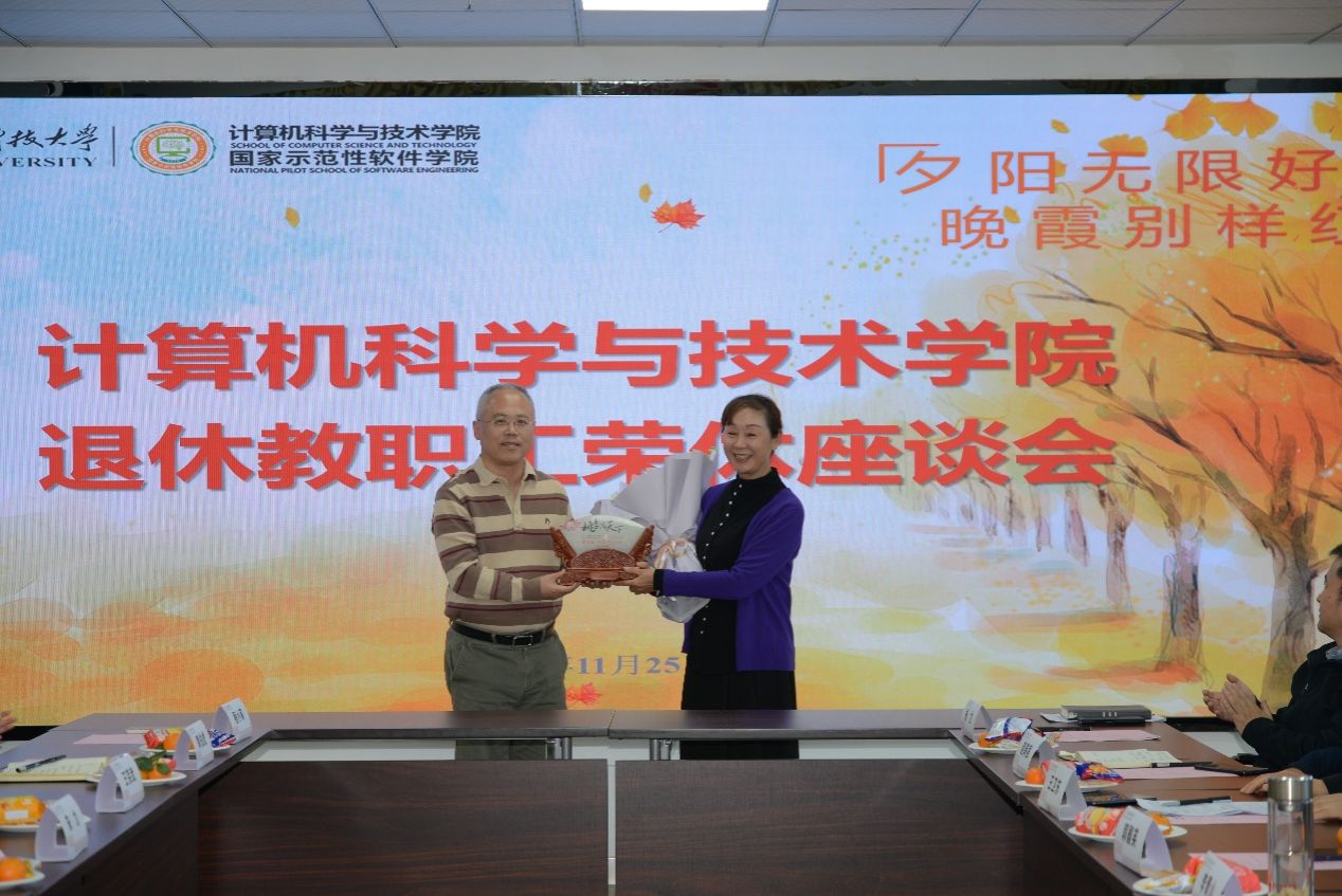 (通讯员 冯雨晴)2025年11月25日下午,太阳成集团tyc234cc在南校区网安大楼A1-223公司报告厅举办退休教职工荣休座谈会。公司班子成员、退休教职工代表、机关及实践教学中心教师代表等30余人参会。座谈会由公司组织员王卫东主持。