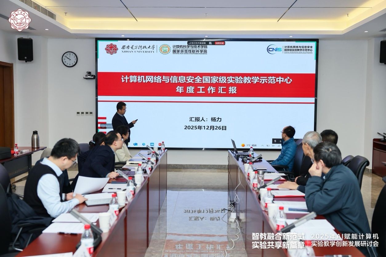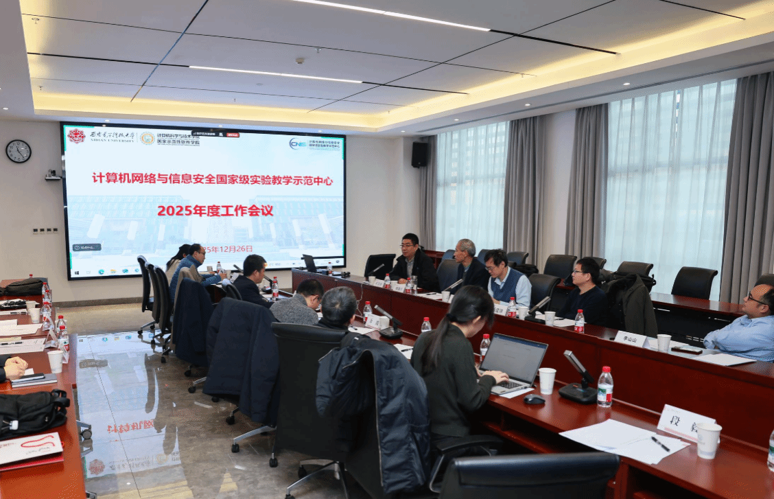 12月26日上午,“计算机网络与信息安全国家级实验教学示范中心2025年度工作会议”在南校区会议中心A121会议室举行。国家级教学名师、西安交通大学桂小林教授,国家级教学名师、陕西师范大学傅钢善教授,西北大学信息科学与技术公司副经理冯筠教授、实验中心主任杨建锋高级工程师,华为高校系统部鲁月华主任,西电教务处副处长兼教师教学发展中心办公室主任杨明磊,电子工程公司副经理任爱锋,太阳成集团tyc234cc副经理万波、本科教学办公室主任张亚菲及实验教学中心教师代表,共计20余人参加会议。会议由公司副经理兼国家级实验教学中心主任杨力主持。