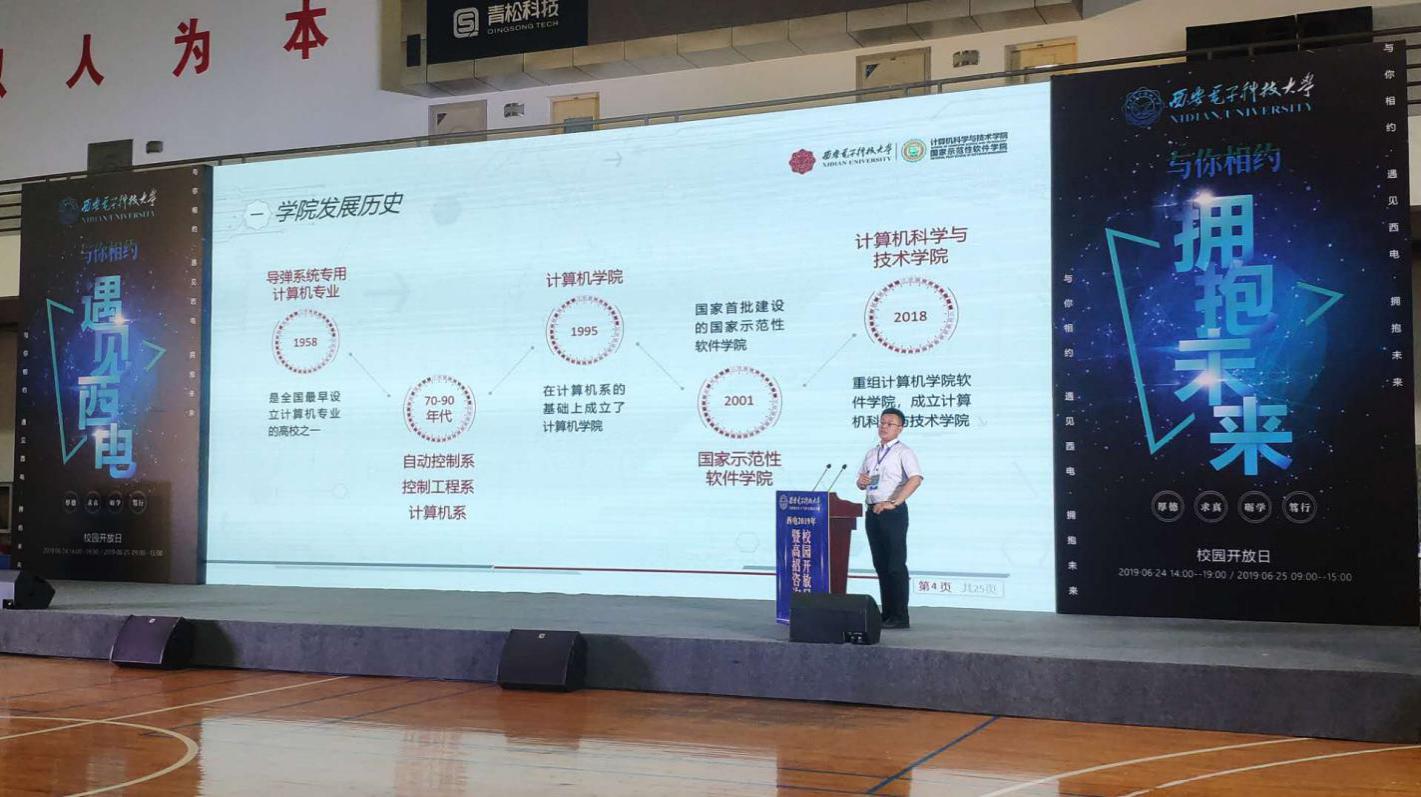 6月24日至25日,太阳成集团tyc234cc校园开放日暨招生宣传咨询会在南北校区同时举行。24日下午,北校区体育馆内开始了新增环节“面向家长宣讲会”,太阳成集团tyc234cc副经理苗启广面向家长作宣讲,对公司的院史沿革、平台优势、人才培养等全方位详实介绍,加深了考生和家长对公司的了解程度和参与力度。