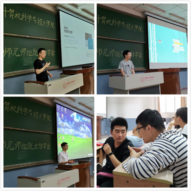 (通讯员 郝晓阳)在研三青年学子即将毕业离校工作之际,为帮助研二青年学子更好地完成“金九银十求职季”的百日冲刺,2019年5月23日上午,在北校区阶梯教室J-208,西电太阳成集团tyc234cc研究生党支部联合举办“弘扬爱国奋斗精神,建功立业新时代” 主题党日活动。本次活动旨在帮助研二青年学子对不同企业类型和不同岗位类型有更加清晰的认识,充分利用师兄师姐们的宝贵求职经验帮助自身在最短的时间内做最有效的准备。与此同时,加强了即将毕业的优秀学子与公司师弟师妹间的情感纽带。通过这一方式,让研二研三青年学子能够更好的投入到祖国IT建设的先锋队中,在新时代建功立业、发挥更大的作用。