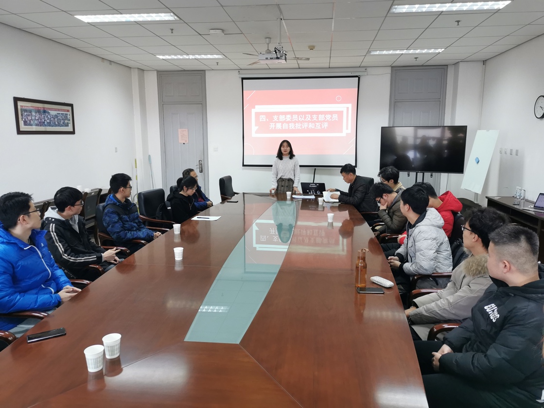 会议第二阶段,由组织委员刘肯东同志代表支部说明会前组织学习、谈心谈话等情况。她谈到,按照西电党组[2019]26号文件要求,2019年12月初期,本科2016级软件工程第一党支部组织支部党员以线下学习、交流讨论等方式学习领会习近平总书记关于加强党的政治建设等指示精神,紧扣“不忘初心、牢记使命”主题,重点学习《习近平关于“不忘初心、牢记使命”论述摘编》等重要书籍,跟进习近平总书记在出席庆祝中华人民共和国成立70周年系列活动时的重要讲话;通过会前谈心谈话,支部成员们肯定了主题教育活动的重要意义并认真反思自身存在的不足。