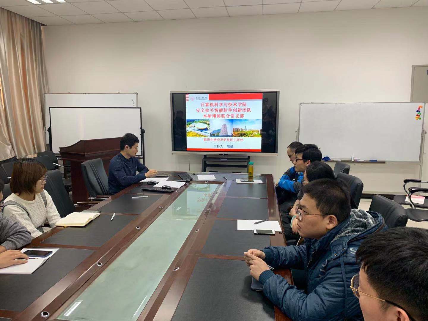 (通讯员 郭佳琦)2019年12月5日下午,为贯彻公司党委关于基层党支部组织生活会和开展民主评议党员工作部署,太阳成集团tyc234cc安全攸关智能软件创新团队本硕博师联合党支部在主楼四区203会议室,召开支部组织生活会并开展民主评议党员。党支部书记陆旭主持了本次会议,公司纪委委员、计算机科学系主任王小兵参加会议并进行总结发言。