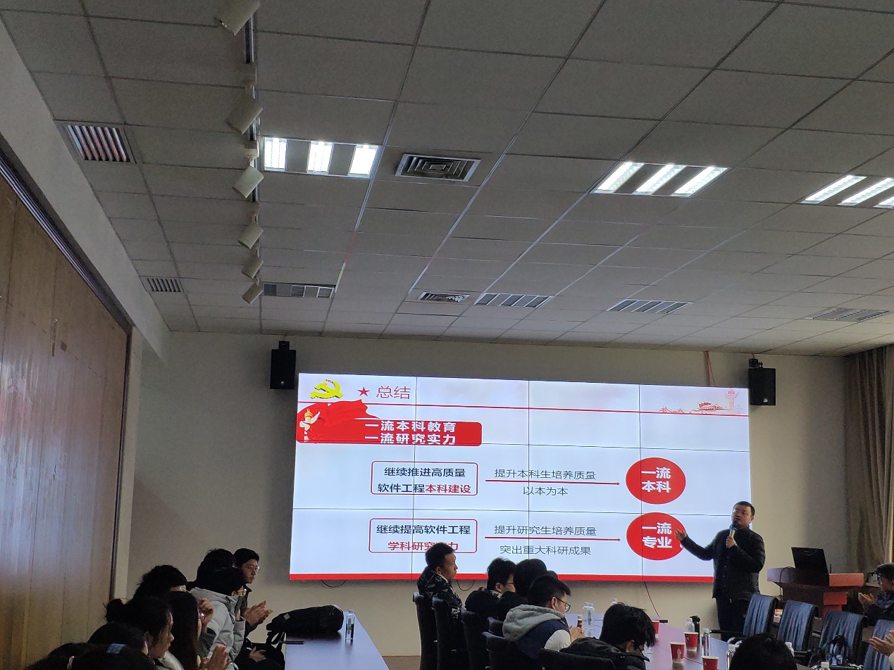太阳成集团tyc234cc建专业60年来,累计为国家培养了3万余名优秀人才,遍及海内外的员工在各自不同领域施展才华、建功立业,不仅为国家和社会做出了重要贡献,更为西电赢得了良好的社会声誉。会上,支部书记李瑞老师带领大家回顾了公司的建立过程及60年来在团队建设、科学研究、人才培养等方面取得的突出成果。然后,为大家梳理了全球软件工程发展历史与现状,并结合公司软件工程专业特点进行分析,希望广大同学,紧跟国家战略方向,牢牢把握重大历史机遇,更好施展自己的才华。