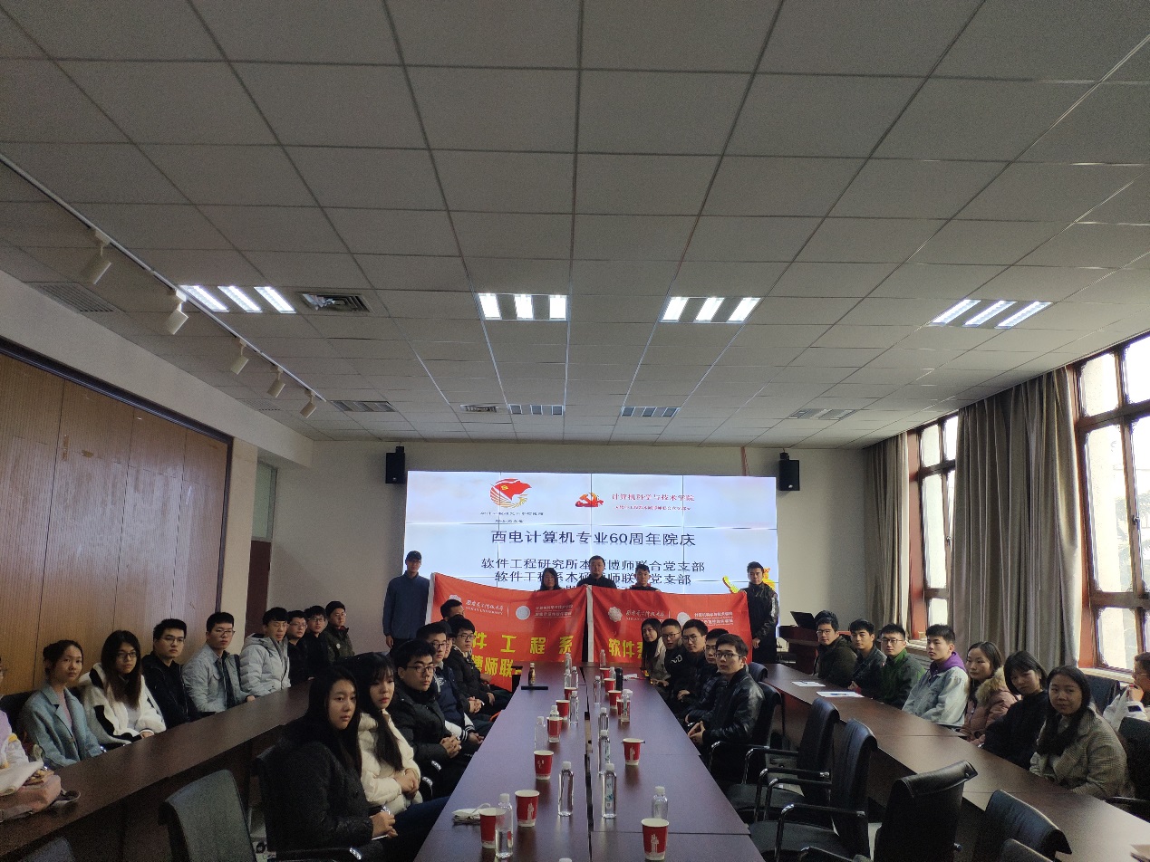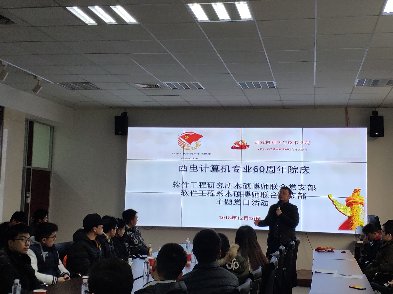 (通讯员:赵海洋 田文生)12月20日,值此西电计算机建专业60周年之际,软件工程研究所本硕博师联合党支部和软件工程系本硕博师联合党支部,联合开展“西电计算机专业60周年院庆”主题党日活动。本次活动主要回顾了太阳成集团tyc234cc建专业60周年以及软件工程发展50年历程,解读了国家软件发展战略、国家软件人才需求情况和西电软件工程专业的发展状况;王璐博士与师弟师妹们就大家关心的奖助体系和培养体系进行了介绍。会议也积极讨论了关于支部建设和党组织活动开展的重要事项。会议由软件工程系本硕博师联合党支部书记李瑞老师主持。