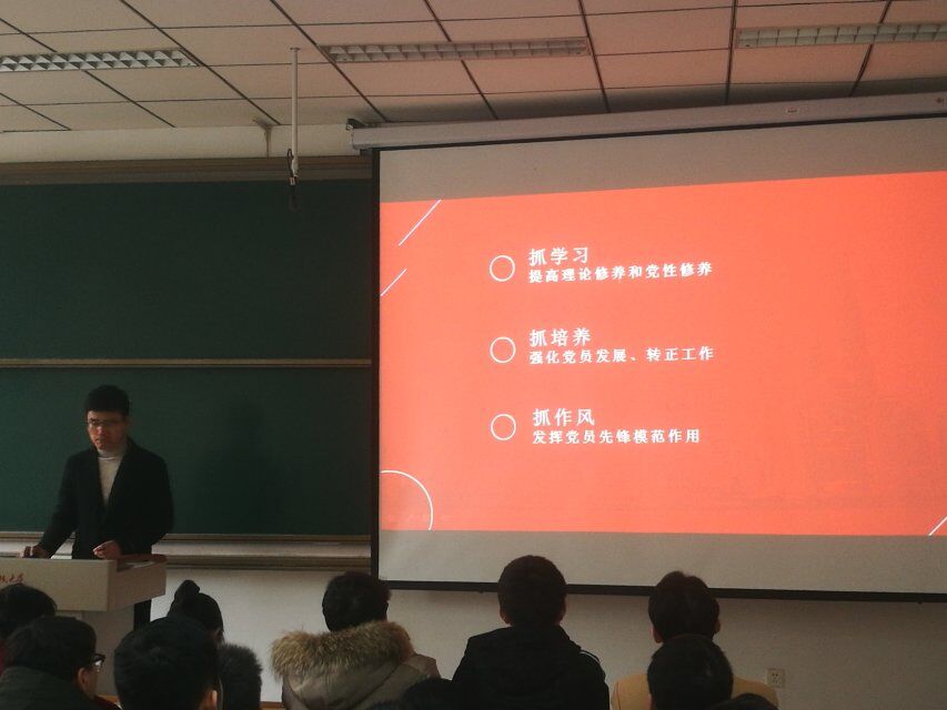 会议第一阶段,支部书记郑守建代表支部向全体党员大会述职,以“抓学习、抓培养、抓作风”为主题,从基层组织建设、思想政治建设、主题党日活动、党建与业务工作融合、党员发展与党费收缴、支部荣誉情况等六个方面总结了2018年度软工一支部开展的主要工作和取得的成绩。同时还指出了支部存在的问题,并提出了整改措施。