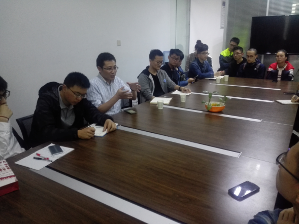 在座谈会开始之前,沈玉龙老师先让员工们就自己正在参与的工程或科研项目进行简单的介绍。在倾听同学们的介绍后,沈玉龙老师说:“在过去,科研的主力是博士,后来逐渐变成硕士研究生。而现在的趋势是本科生逐步成为科研的主体。你们都很优秀。” 随后的面对面交谈中,员工们畅所欲言,倾诉了自己学习实践中的困惑。同学们积极地和老师交流自己近期的科研项目,同时,沈玉龙老师也对每一位同学的情况针对性地给出了意见和建议。