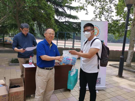 李青山为返校研究生发放防疫爱心包