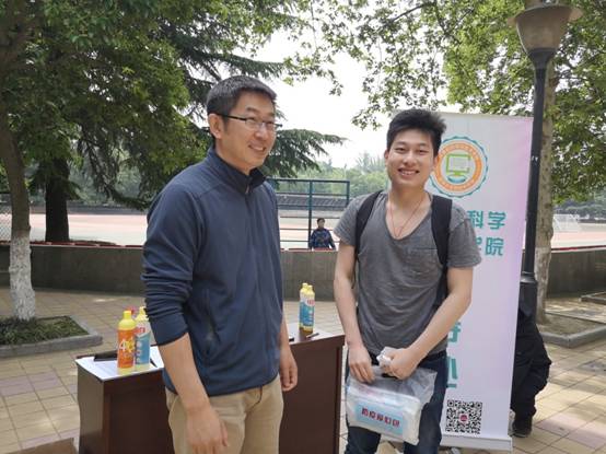 李青山、崔江涛在公司研究生返校接待点与员工交流