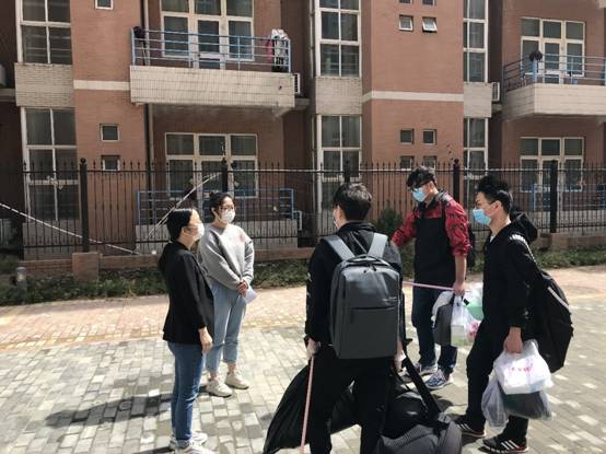 张莹莹与辅导员前往隔离区接回湖北籍解除隔离员工
