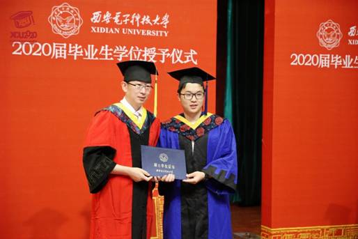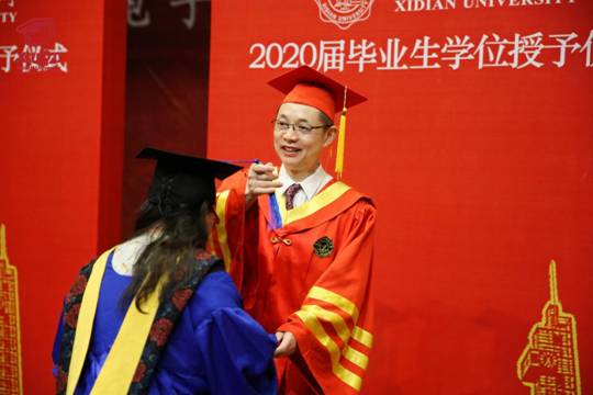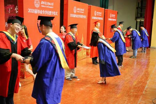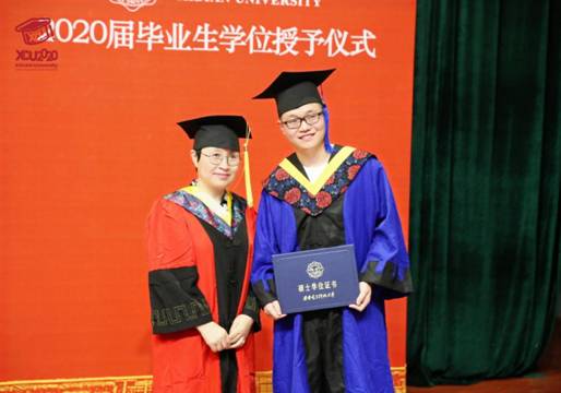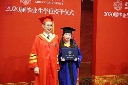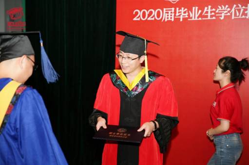 “祝2020届毕业生同学幸福平安、前程似锦!”在主持人深深祝福声中,授位仪式圆满结束。同学们手捧学位证书,久久不愿离去,争相与辛勤培育自己的导师、关心关爱自己的辅导员、朝夕相处的同学合影留念。