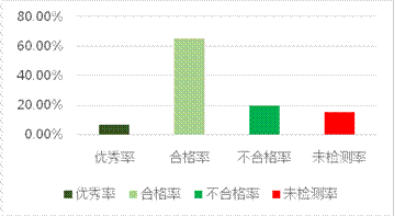 论文检测完成之后,通过平台智能统计分析功能,掌握全院毕业生论文格式整体情况,了解不同专业员工水平,同时在后期的论文指导中加强管理,推进公司毕业论文质量持续改进。2020届共有984人申请毕业设计,系统自5月14日开放使用以来,累计检测论文5165次,单人平均检测次数为6.1次。表1和图3为公司整体检测状态,其中67人没有错误,质量优秀,比例为6.8%,合格人数642人,比例为65.2%。