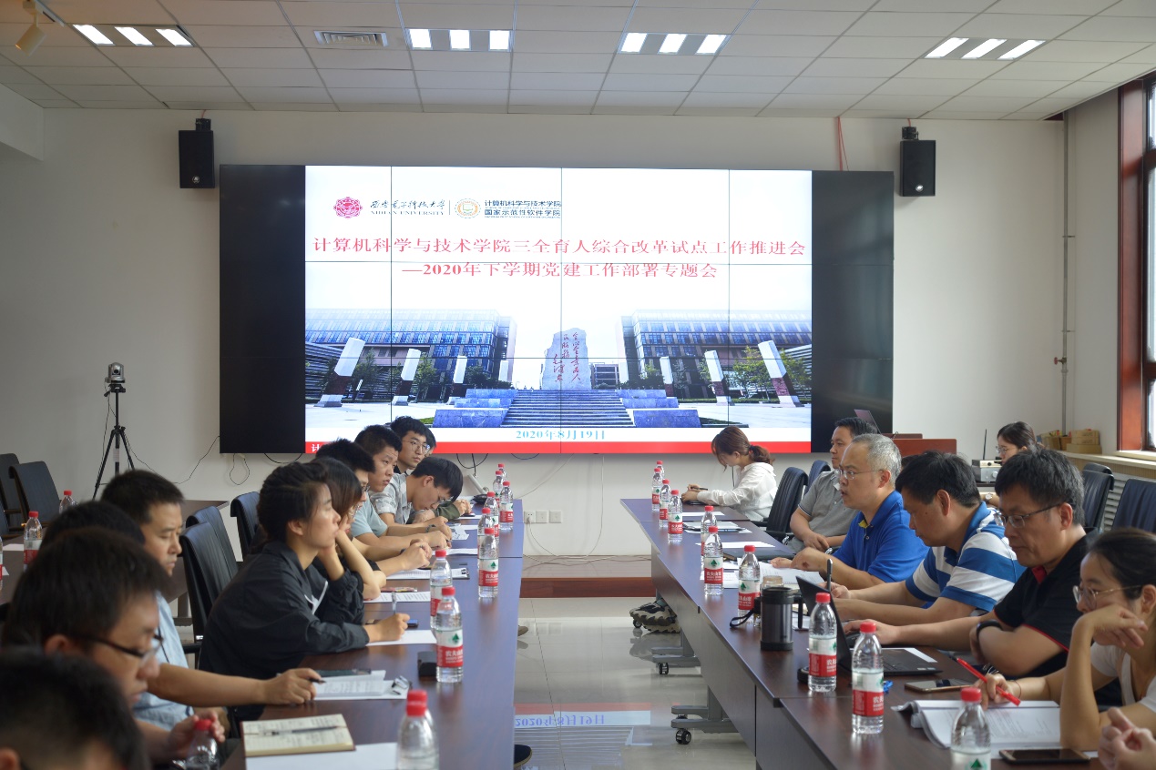 教职工党支部立足立德树人实际,从课程育人、科研育人、管理育人、心理育人、实践育人、文化育人、服务育人等方面汇报工作计划。其中,公司“双带头人”教师党支部工作室培育单位—网络工程系党支部的书记苗启广融入“三全育人”理念,从全体党员参与、帮扶困难员工、校企交流合作和“后疫情时代”育人工作等维度汇报了党支部工作计划。公司样板支部培育单位—软件工程系党支部的书记宋胜利汇报了“内强、外拓、中优”的党支部建设思路,从党建与业务深度融合、多维交叉协同等方面将“三全育人”理念融入党支部建设工作中。
