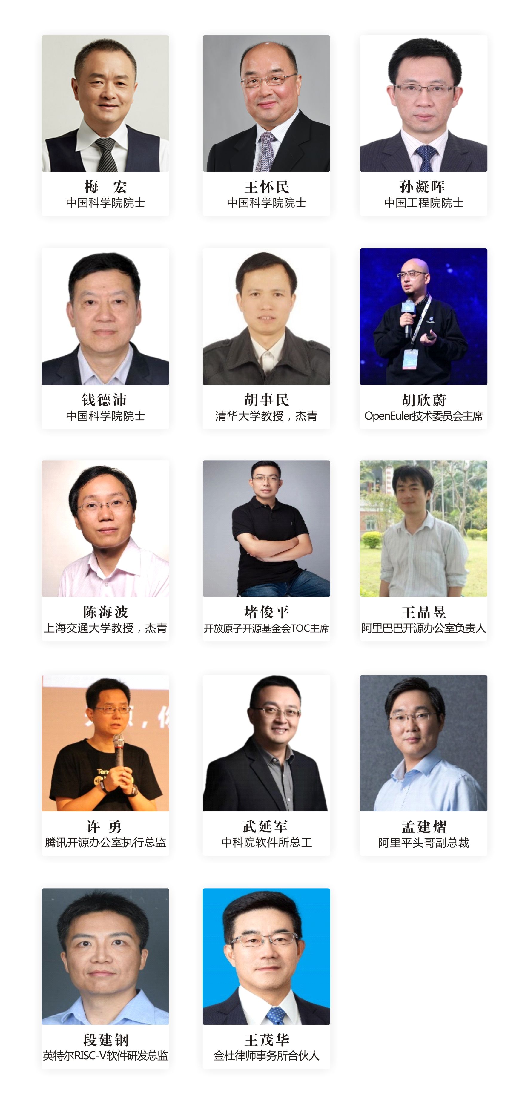 作为第一届CCF全国开源大会,本届大会将组织特邀报告、开源高峰论坛、开源发展委员会路演、社区论坛、技术论坛、教育论坛、开源创新大赛培训等20余个不同类型的活动。大会将邀请10余位开源及相关领域中国科公司院士、中国工程院院士与知名专家,为大会带来特邀报告并参加开源高峰论坛等活动。目前已邀请参会的两院院士与知名嘉宾包括中国科公司院士梅宏,中国科公司院士王怀民,中国工程院院士孙凝晖,中国科公司院士钱德沛,工信部信发司有关领导,国家杰出青年自然科学基金获得者、清华大学教授胡事民等。本届大会预计将吸引参会单位超过100家,作为中国开源领域的年度盛会,诚挚地邀请开源领域学术界、企业界、教育界的学者、从业者、师生等前来参会!