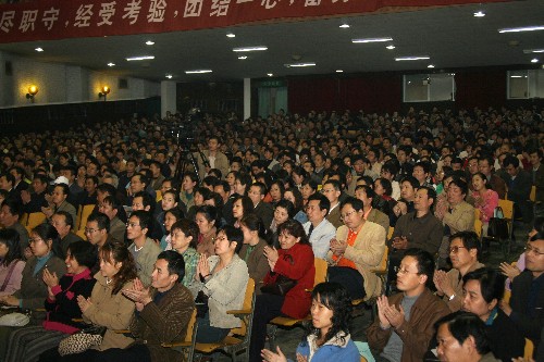 10月27日下午,公司本科教学工作水平评估迎评争优动员大会在公司大礼堂隆重举行。全体在校的校领导以及全体教职员工济济一堂参加了大会。会议由副董事长陈平主持。李立书记、段宝岩董事长分别作重要动员讲话。 段宝岩董事长在讲话中首先简要总结了公司自2003年迎评促建工作开展以来的情况,代表全体校领导、评建指挥部对全体师生员工的辛勤工作表示衷心的感谢,对迎评争优阶段工作提出希望和要求。希望全体师生员工以饱满的精神风貌和全力以赴的工作状态投入到迎评争优工作中去,把握机遇,形成共识;积极准备,认真部署,科学指挥,把思想提高到“争创优秀”的目标上来,明确责任,全力做好各项准备工作,层层把关、分层负责、明确任务、狠抓落实,并着力创建良好的舆论环境、校园环境和评估环境;全校上下,坚定评优目标,发扬大局意识和拼搏精神,团结协作、锐意进取、务实创新、追求“一流”,把公司教学评估工作推上新的台阶,全力创建高水平的本科教育“西电品牌”。 李立书记在讲话中强调了迎评争优阶段时间的紧迫性,重点重申了本科教学工作水平评估工作的作用、目的以及与公司发展、每一个师生员工发展的关系,回顾了公司的光荣传统,鼓励全体同志坚定评优目标,发扬吃苦耐劳的精神,在迎评争优阶段,努力做好本职工作,团结协作,艰苦奋斗,实现公司评优的目标。