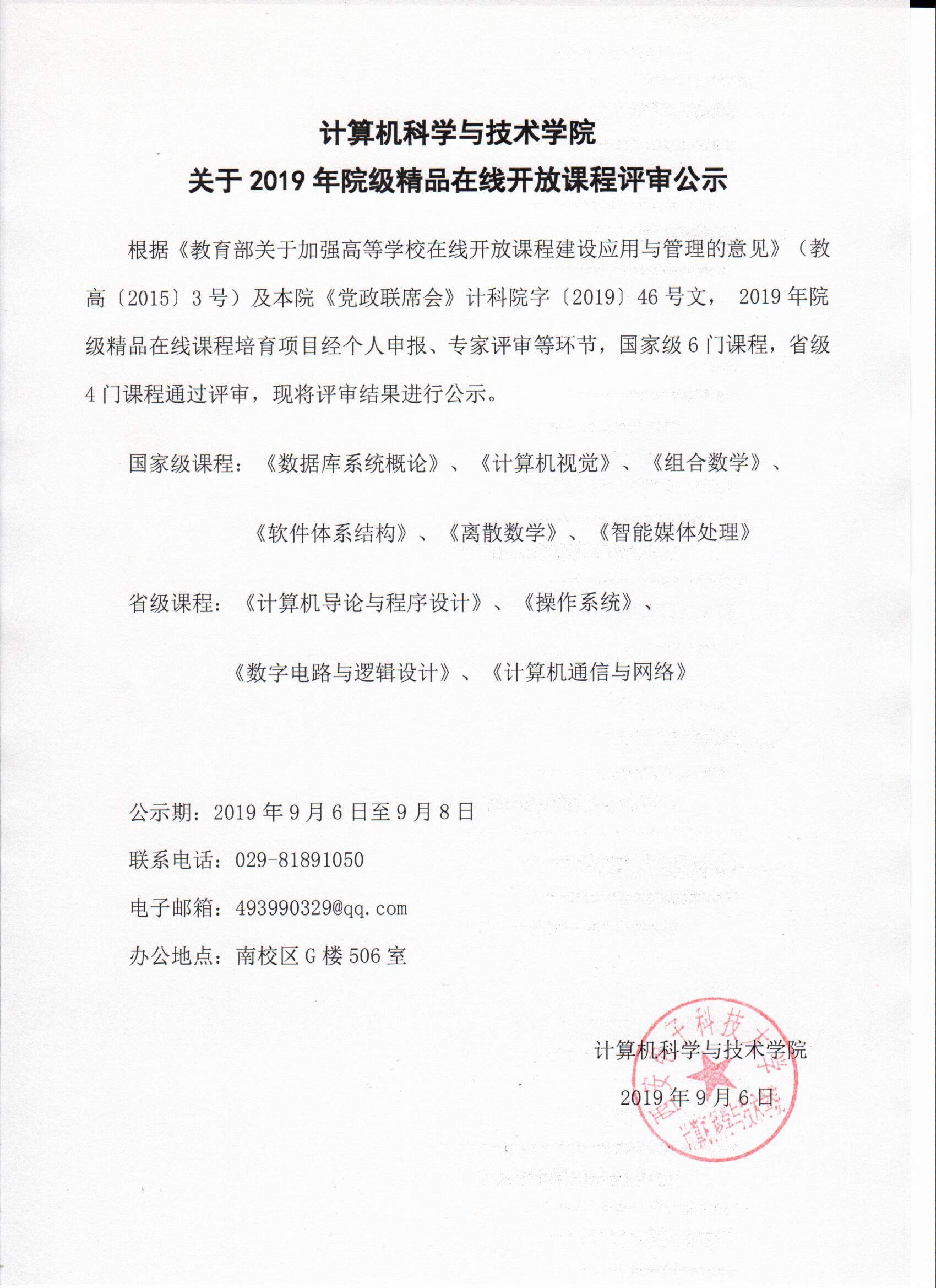 公司关于2019年院级精品在线开放课程评审公示