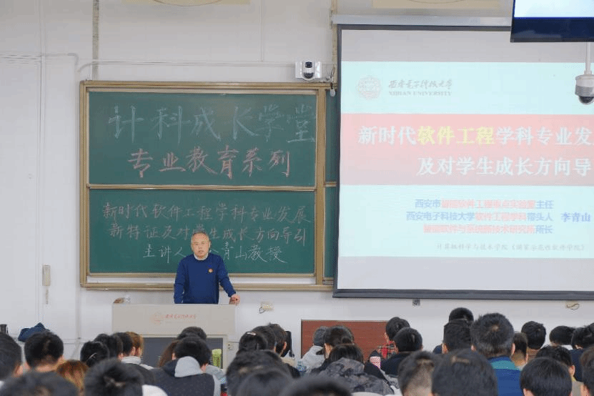 李教授对公司软件工程学子的成长成才提出了建议,提出了“同频共振历史潮流时代发展,主动融入国家主流社会主律”的殷殷期许。他指出,作为西电学子,同学们首先要认清时代潮流,洞悉时代主旋律,认清行业和技术发展的趋势,紧跟时代发展大势;其次是要理清我国发展时空方位,把握个人特色优势,在时代洪流中保持头脑清醒;第三要同频国家需求,紧跟国家、产业、行业的需求,练就过硬本领,将个人发展融入到国家发展的大潮中;第四要共振社会主律,将个人价值与幸福与中国梦融为一体,做德智体美劳全面发展、堪当大任的时代青年。在报告的最后,李教授勉励各位计科学子珍惜时光,珍惜时代和国家给予的机会,掌握知识、增强本领,提升自我,将个人发展与时代、民族、国家的发展同频共振,实现自我价值与社会价值的有机统一。