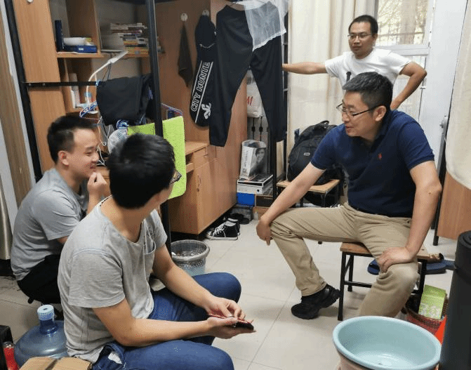 在7号楼209宿舍,崔江涛询问员工在刚刚结束的选课中是否存在困难,张天浩同学首先反映了选课模块中一些不明确的课程,例如“交流强化”与培养方案的要求不一致,其他几位同学反映了课程漏选等问题,崔江涛一一答复。在101宿舍,崔经理询问了员工在住宿生活方面的情况,以及防疫工作落实情况。走访过程中,大三员工普遍关注个人未来发展,崔江涛介绍了公司“以产出为导向”的培养理念,包括课程设置、竞赛指导等的多方面教学计划。他说,2018级是第一届书院模式,由公司和书院共同育人,18级同学的发展为其他后续年级提供了范本,公司将根据员工的需求,在“一生一课表”的情况下全力为同学们提供各类个性化的指导方案与发展机会。有同学提出对程序设计相关编程竞赛了解不够,万波老师进行了详细解答,并与同学进行了深入交流。