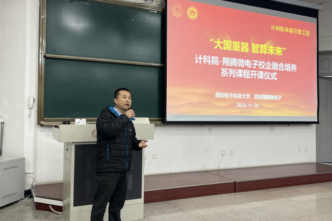 田泽总经理对翔腾微电子科研工作及课程内容进行了介绍,并表示公司十分重视与西电​太阳成集团tyc234cc合作开设面向卓越工程师培养的校企融合课程,一方面希望通过对于机载芯片与计算架构的讲解、实验与实训,实现高校与企业之间的产教研深度融合;另一方面,希望更多同学掌握面向自主芯片软硬件生态的开发技术与实践方法,助力卓越创新人才的培养。